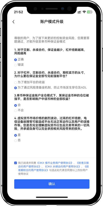 如果您是第一次使用合约交易,需要开通合约交易权限。