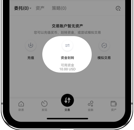 如果您的资金还未划转到交易账户中,需要点击该按钮进行划转。
